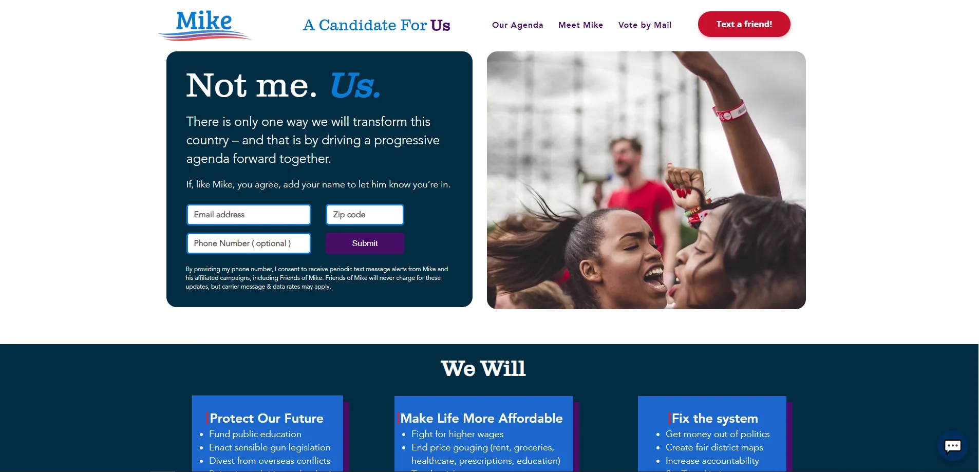 Mikesell Bot — Chatbot Campagne IAIntelligence ArtificielleChatbot politique propulsé par Claude AI avec capture de leads